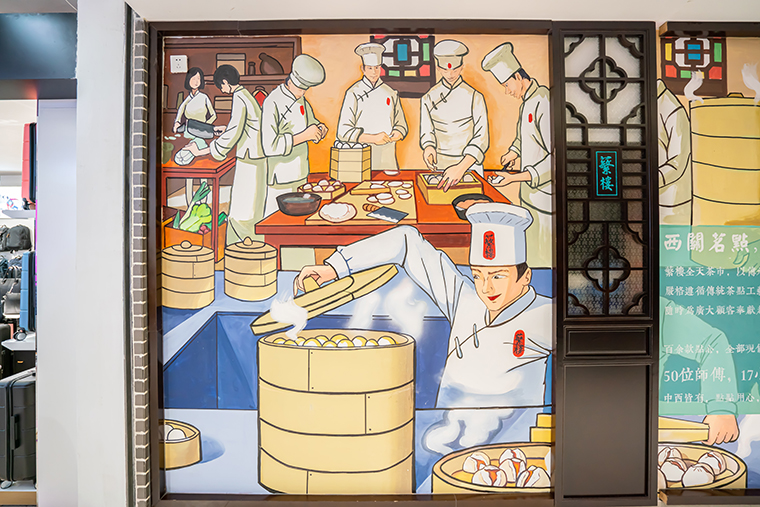 轉(zhuǎn)換成一張圖畫來表達(dá),真實(shí)具象地還原了“蘩樓鮮做”場景,讓顧客一下就記住了蘩樓鮮做的核心優(yōu)勢。品深餐飲設(shè)計(jì)將此畫面應(yīng)用到餐廳空間設(shè)計(jì)中,使之成為非常有效的傳播媒介。