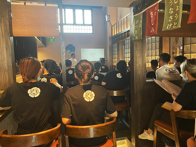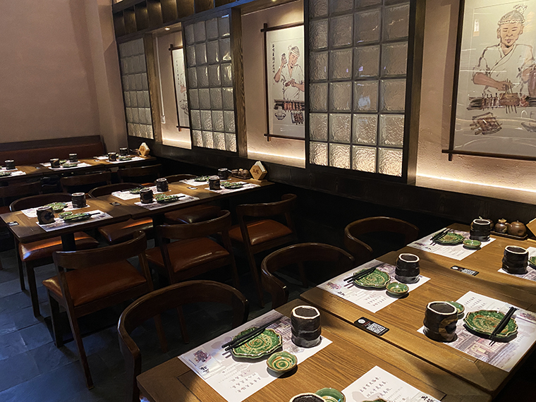 如:品深餐飲全案策劃設(shè)計(jì)的玉椿燒鳥(niǎo)居酒屋,設(shè)計(jì)師通過(guò)國(guó)畫(huà)手繪小品的形式展示燒鳥(niǎo)的制作過(guò)程,巧妙的結(jié)合在形象墻上,消費(fèi)者在享受美食的同時(shí),也理解了燒鳥(niǎo)的知識(shí)從而記住了玉椿燒鳥(niǎo)品牌。