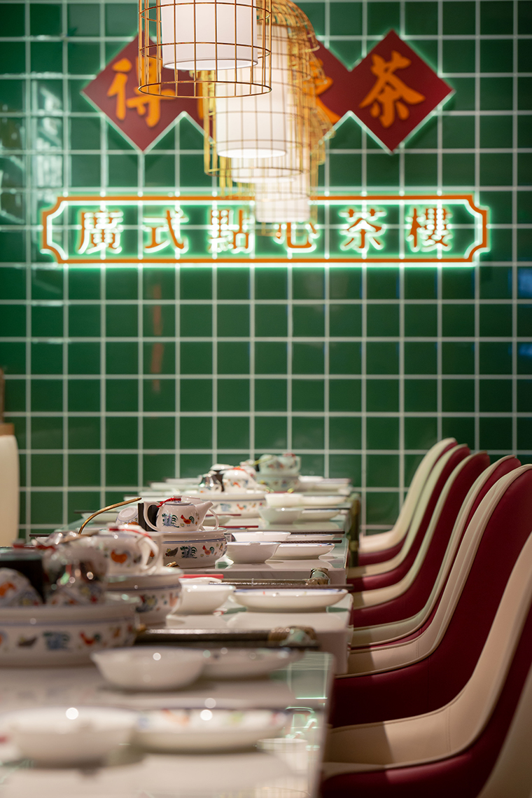 ”的原則,努力打破傳統(tǒng)廣式茶樓過于復古,陳舊的氣息,著力打造色彩更加鮮明,更接地氣的廣式老茶樓。