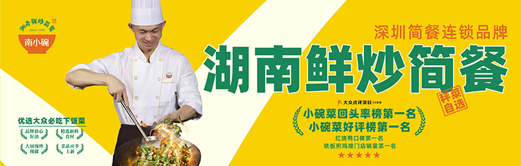 簡潔有力的品牌描述:南小碗,源于1998,來自湖南的鮮炒簡餐。永遠以店小二的謙卑之心,堅持優選品牌好油好米,只用當日新鮮食材,保證菜品現做鮮炒,真心奉上一碗熱菜,一碗熱湯,一碗熱飯。