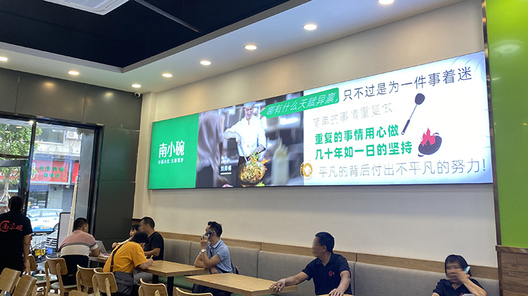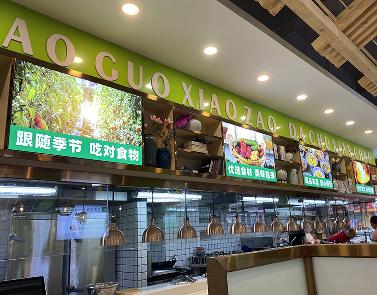通過前期周密的市場考察和詳細的內部調研,品深餐飲全案設計團隊為南小碗提取了“小鍋小灶,大廚現炒”的核心訴求,并以精心策劃設計的形象畫面在門店形象中不斷放大,重復,讓消費者記憶深刻。南小碗觀瀾店位于富士康時光大道,面積230多平米,主要客群就是富士康的員工。南小碗觀瀾店裝飾一新,環境雅致,菜品新鮮,品種多樣,價格實惠,一經開業,生意火爆。