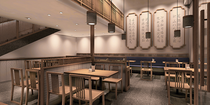 古代的懷舊是用餐空間設(shè)計(jì)中經(jīng)常使用的主題。它收集并組織了豐富的歷史和文化特色,再現(xiàn)了歷史魅力,并賦予了食物空間以強(qiáng)大的生命力和吸引力。爬上樓梯后,覆蓋著藍(lán)灰色石板的地面是蜿蜒的走廊。環(huán)境營造出一種平靜和清晰的感覺。