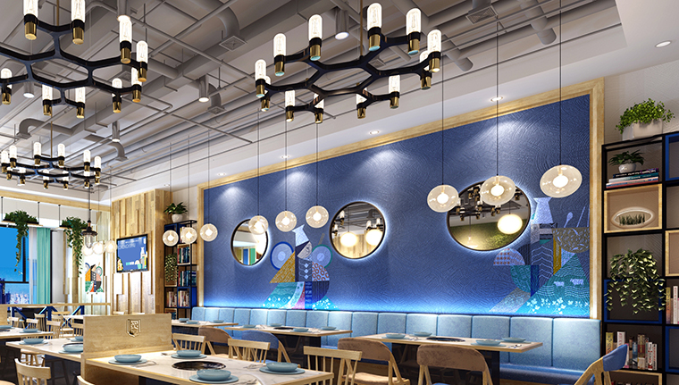 品深餐飲設(shè)計在整個空間裝飾設(shè)計中,我們貫徹“讓消費者能放松心情,享受美食,有情懷,有情調(diào),有趣味”。通過空間中大面積天空藍的使用,與我們傳達的新鮮,干凈、現(xiàn)拌的出品特質(zhì)完美契合,使用藍色刻意營造舒適,純凈的用餐氛圍;